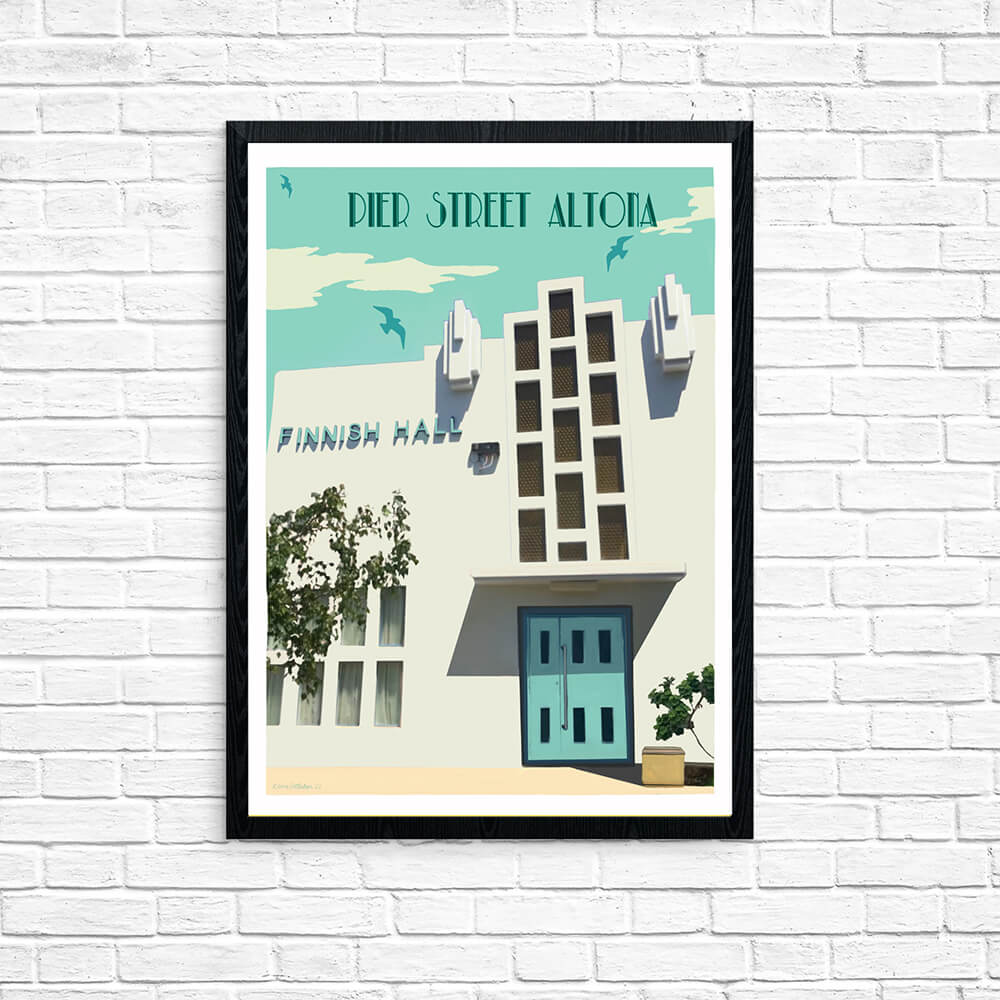 Kerrie Gottliebsen is a Seaholme artist creating vintage inspired posters that celebrate iconic landmarks around Melbourne’s west and beyond.One of Kerrie’s earliest designs was the famous Finnish Hall in Pier Street, Altona.